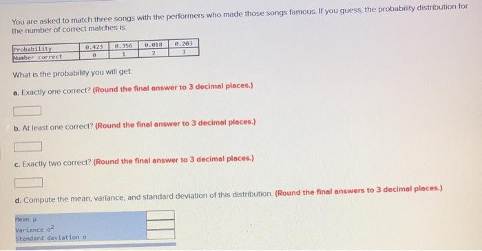 Solved You Are Asked To Match Three Songs With The Chegg Com
